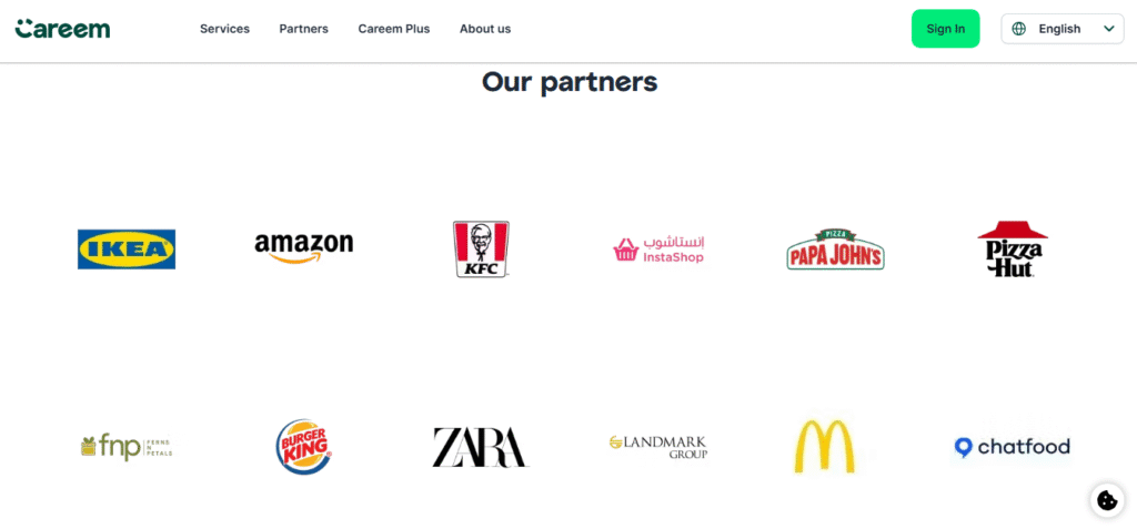 Careem works closely with global and regional brands to power its delivery, logistics, and commerce services across the UAE and wider MENA region. Partnerships with companies like IKEA, Amazon, Zara, Papa John’s, Pizza Hut, KFC, and Landmark Group allow Careem to handle high order volumes with speed and reliability. These brands use Careem’s fleet, routing technology, and real-time tracking to reach customers faster. For Careem, these partnerships strengthen its role as a logistics backbone for large enterprises operating at scale.
