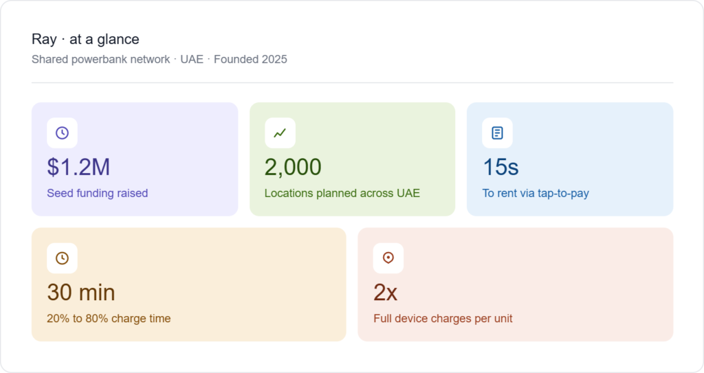 • Ray raised $1.2M to launch and scale its powerbank-sharing network across the UAE and GCC.