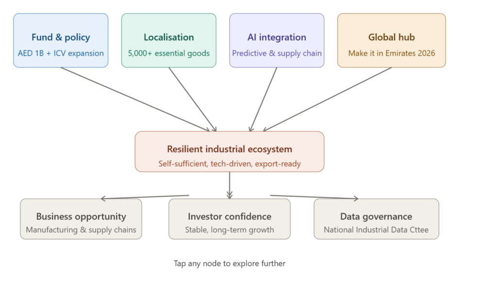 This initiative creates a clear shift in how the UAE approaches economic growth. Instead of relying heavily on imports, the country is building local production systems supported by policy, funding, and technology.